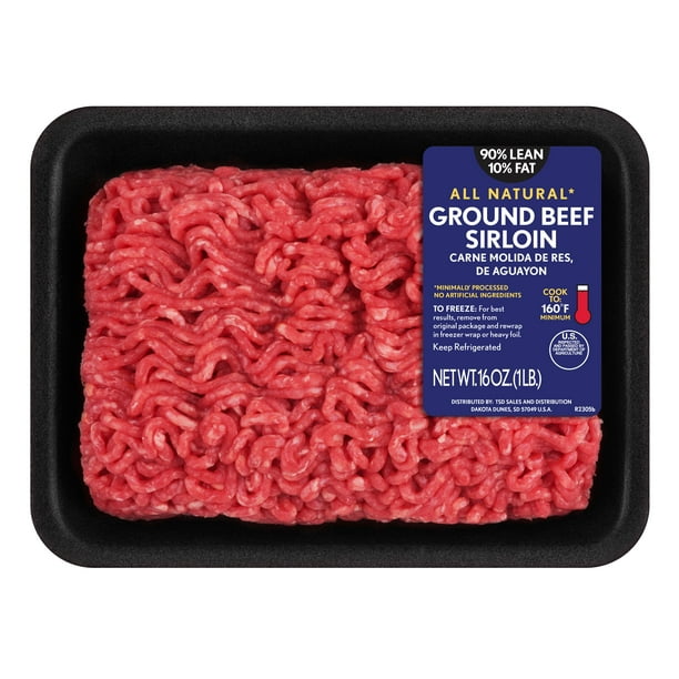 All Natural 90 Lean 10 Fat Ground Beef Sirloin Tray 1 Lb