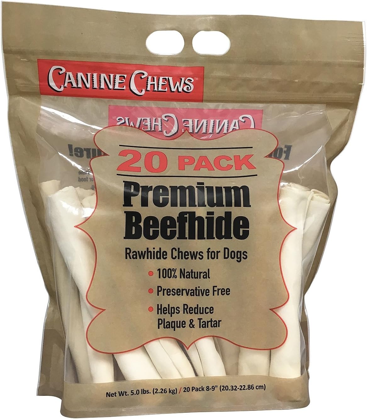 1 5lb Bag Of 20 Canine Chews Rawhide American Beef Hide Dog Chew