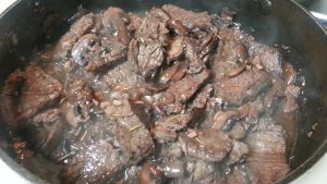 beef and mushrooms in red wine sauce