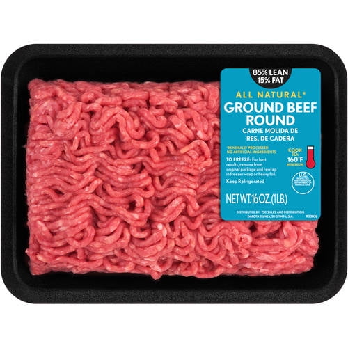 85 Lean 15 Fat Ground Beef Round Tray 1 Lbs Walmart Com