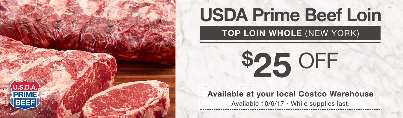25 Off Usda Prime Beef Loin Top Loin Whole New York Costco